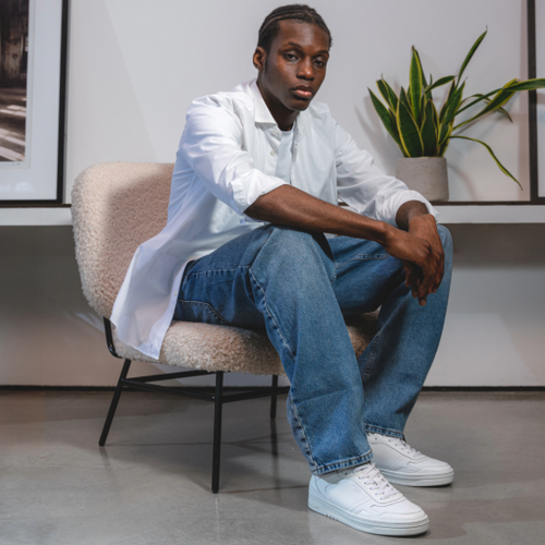 Thoughtful details like white flat cotton laces, silver foil branding, and a soft white textile lining ensure all-day comfort and timeless appeal. A durable white midsole and grey rubber outsole provide grip and performance, whether in the city or on the move.