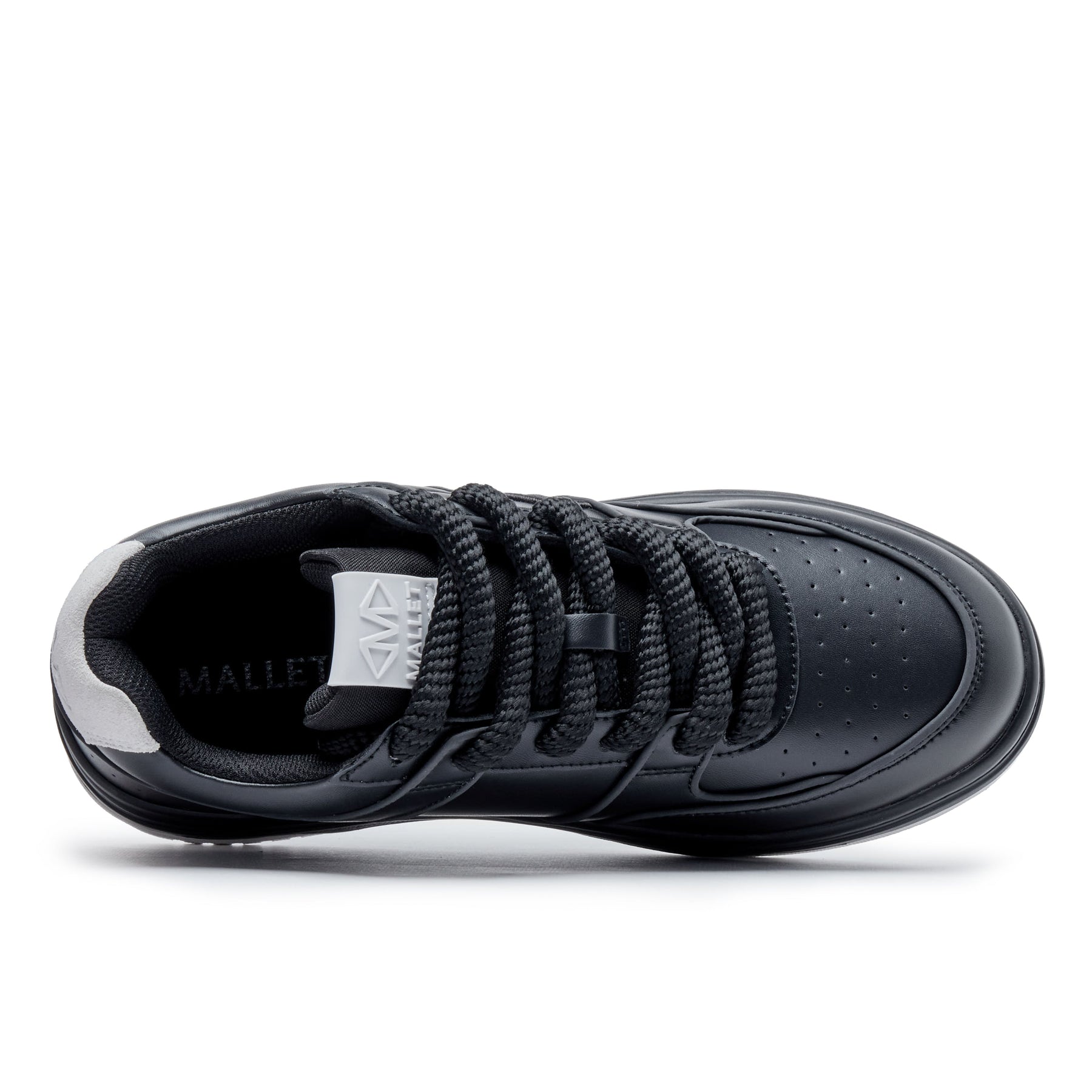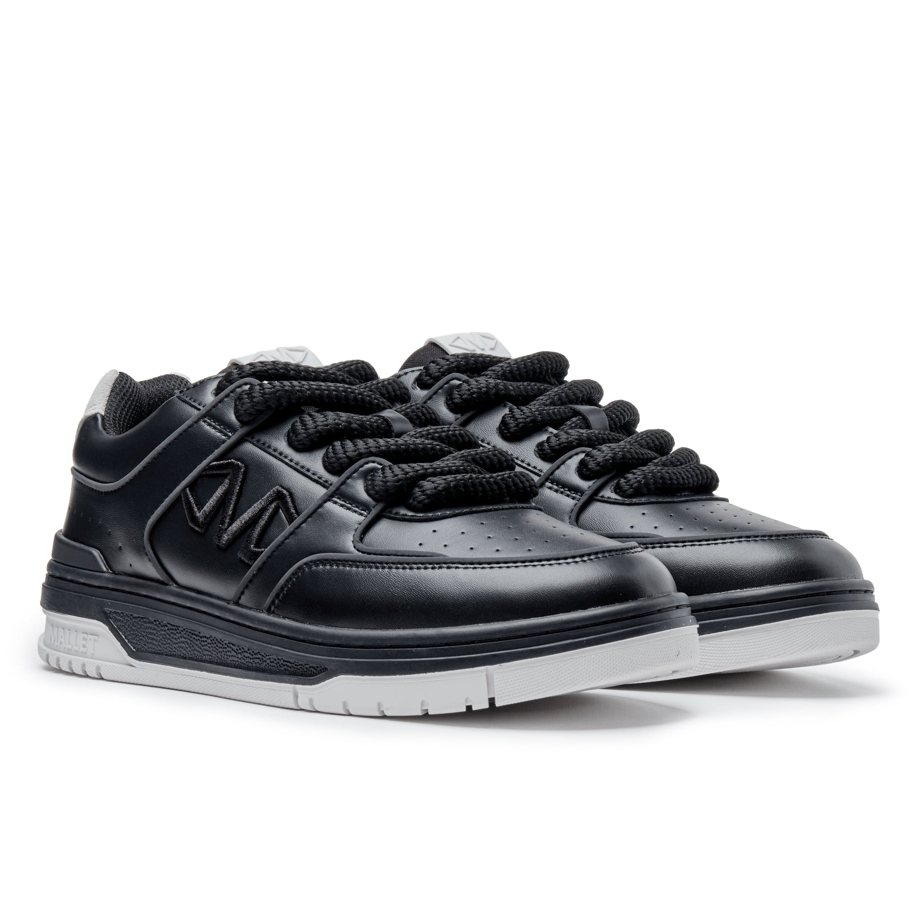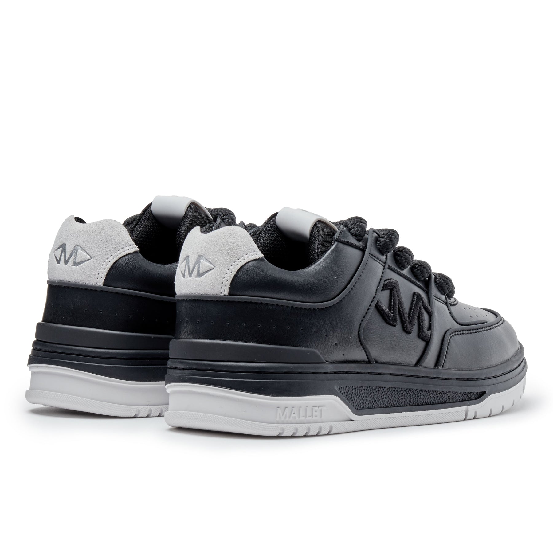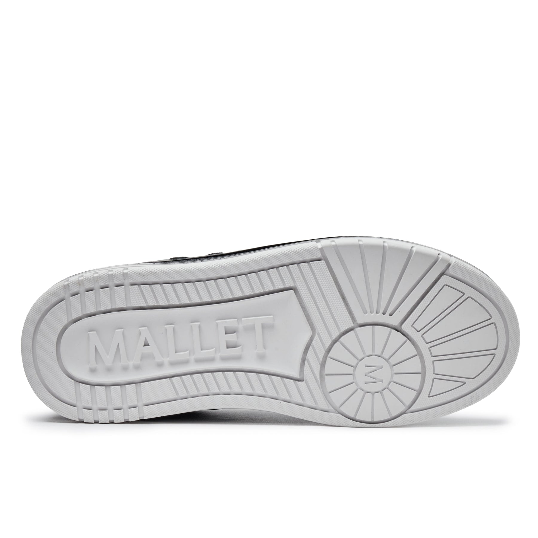 Minimalist yet bold, the Clayton Black Ice trainers channel a street-inspired attitude through a lens of refined craftsmanship. Designed in London, these luxury trainers feature smooth black leather underlays with tonal black suede overlays, elevated by reflective piping and Mallet’s signature diamond monogram embroidery.