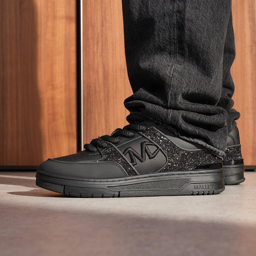 Shimmering with subtle sophistication, the Clayton Black Spark trainers combine skate-inspired style with Mallet London’s refined craftsmanship. Designed in London, these luxury trainers feature black leather underlays paired with sparkling overlays and tonal reflective details for a standout street-ready look.