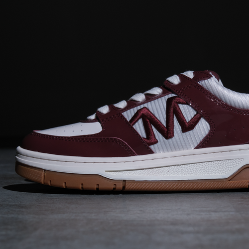 • Premium cranberry patent and white leather upper with white mesh panels