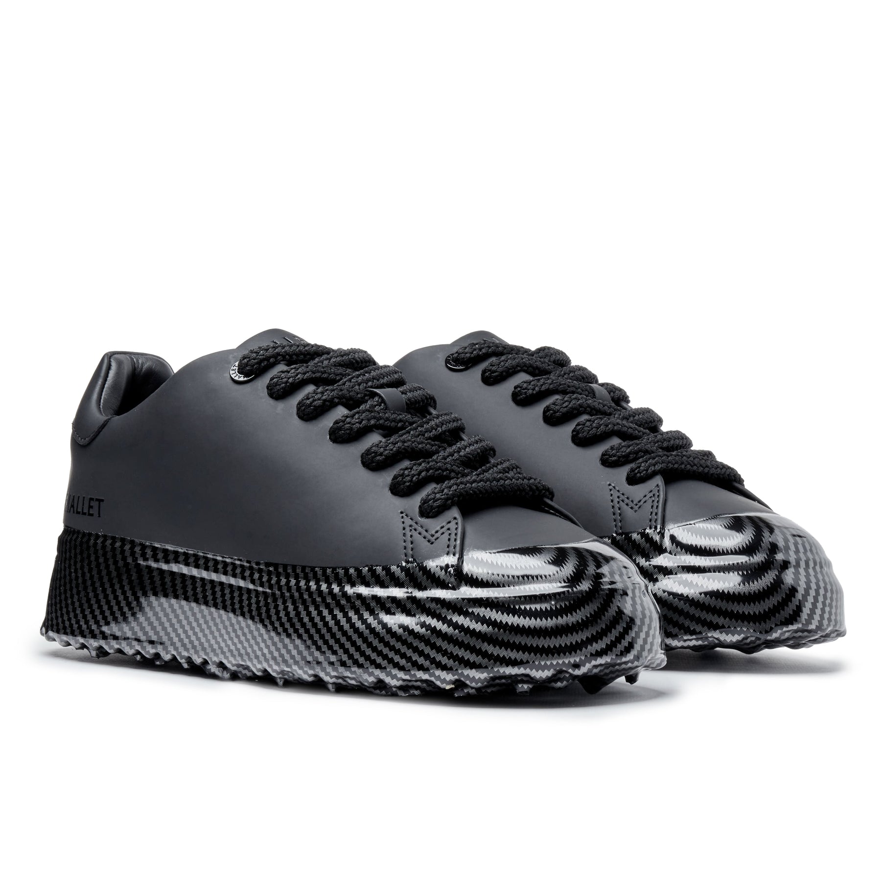 Bold, modern, and uniquely finished, the GRFTR Lite Black Carbon Fibre Dip trainers combine street-inspired design with Mallet London’s premium craftsmanship. Designed in London, these luxury trainers feature a full black matt leather upper with a hand-dipped carbon fibre print sole, creating a striking, one-of-a-kind finish.