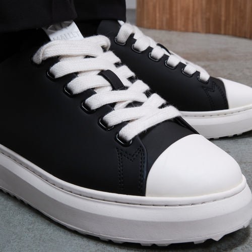 Command attention with the classic GRFTR LTC Black Leather men's trainers. Built on our iconic GRFTR Lite silhouette with added rubber toe cap protection, these premium trainers showcase striking black and white contrast.