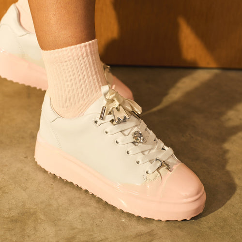 Women’s white leather low-top trainers with light pink dipped chunky sole