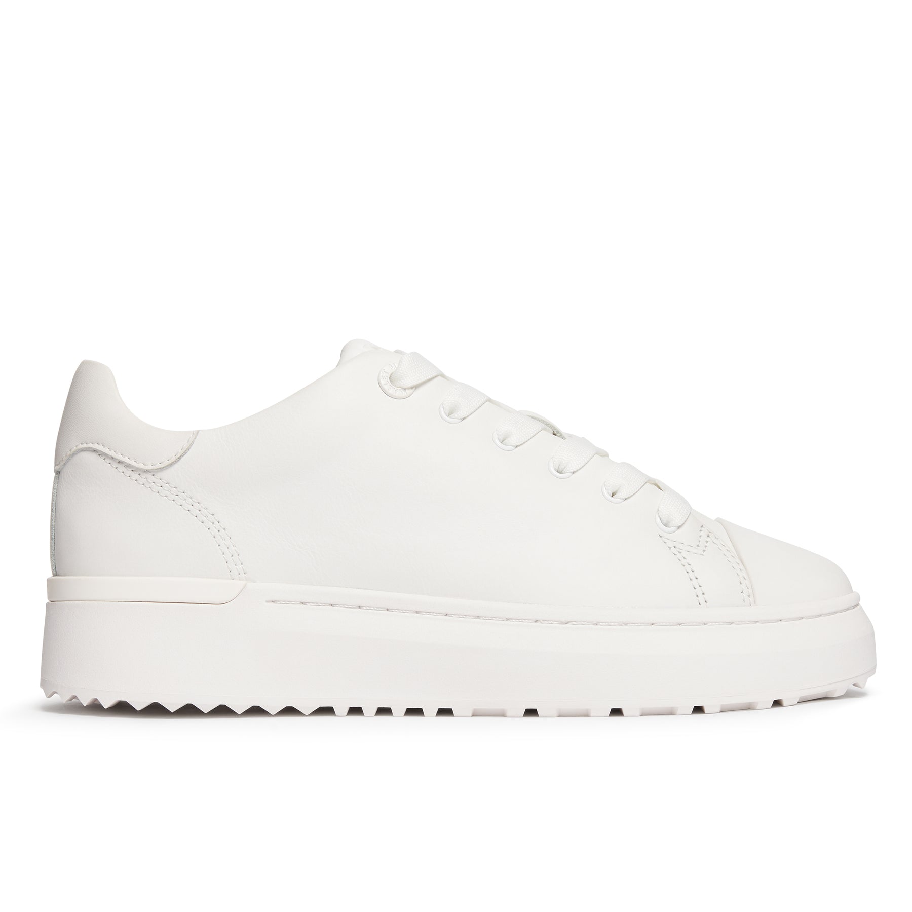 Elevate your style with the premium GRFTR Lite Toe Cap white leather women's trainers. Crafted from luxurious white leather with refined details including white waxed laces, tonal lace ends, and branded mallet eyelets.