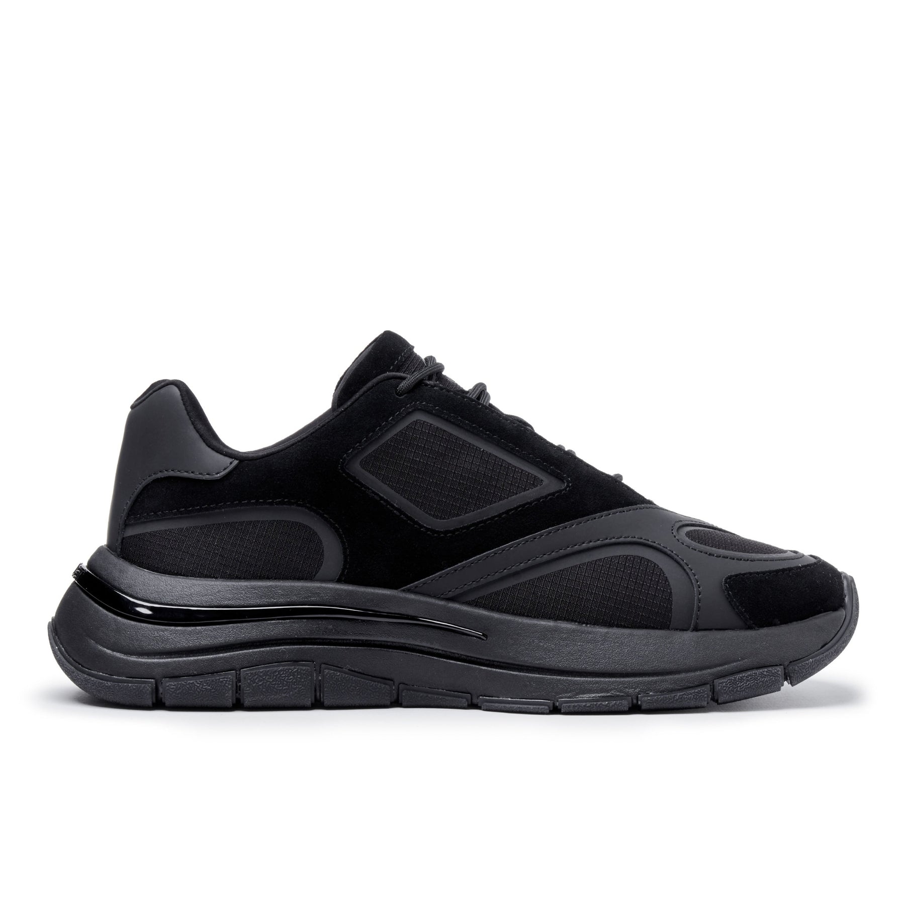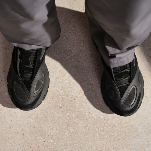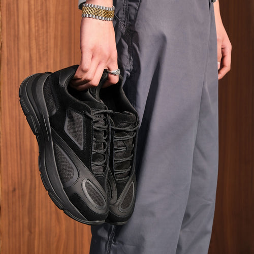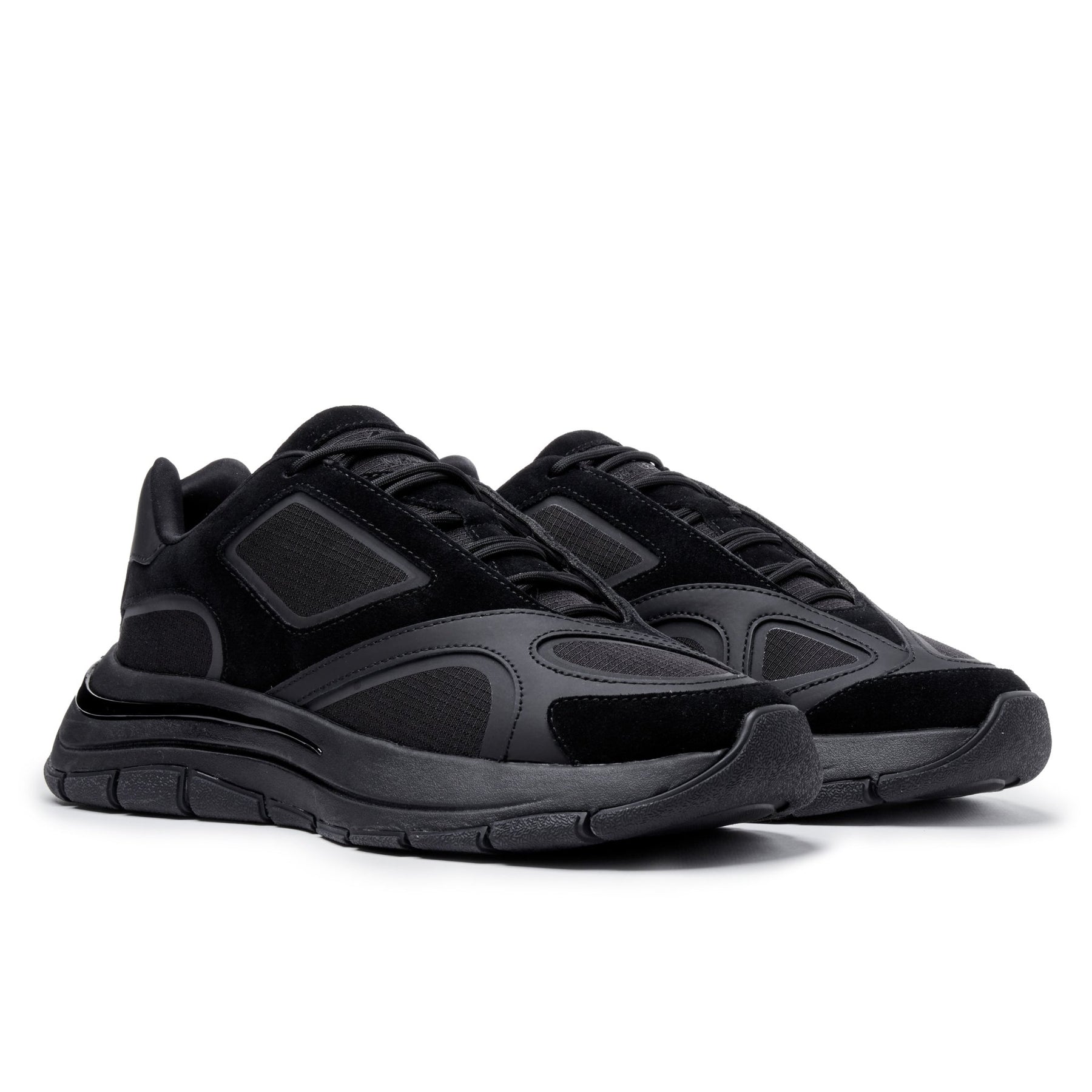 Step into a new era of luxury trainers with the Orb Black Out, the first asymmetric upper trainer from Mallet London. Inspired by distorted reflections in glass and water, this premium streetwear trainer blends technical materials with modern aesthetics.