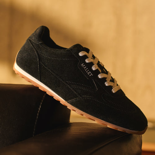 Penn Black Gum Womens delivers a retro-inspired slim sole trainer crafted from premium Portuguese leather and washed suede. Lightweight and casual, this refined runner features LWG-certified leather for a sustainable luxury finish.