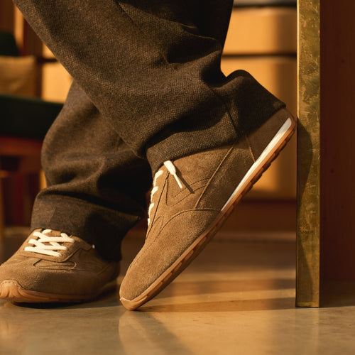 Penn Mocha Gum delivers a refined take on a retro-inspired runner, defined by a slim sole profile and rich suede construction. Made in Europe from premium Portuguese suede, this lightweight trainer offers effortless everyday luxury with a classic gum sole finish.