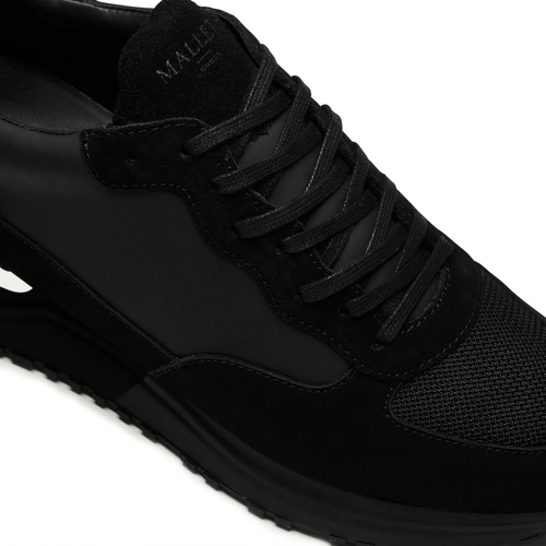 The Iconic Mallet Popham Black Trainer. Constructed from premium suede, scuba and leather, featuring Mallet's monogram for added luxury. Inspired by the Suburban area of North London where it gets its name from.