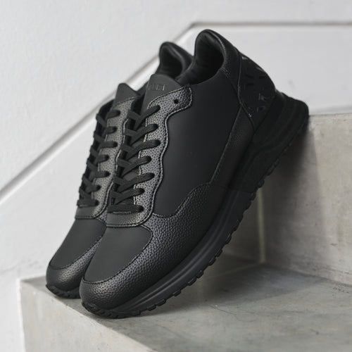 The Popham Tumbled Blackout Trainer delivers a refined take on a MALLET classic. Crafted from premium matte and tumbled leathers, this all-black design embodies quiet luxury with unmistakable London attitude.