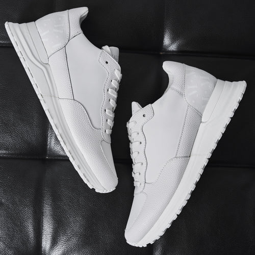 Crisp, clean and effortlessly refined, the Popham Tumbled Triple White trainers redefine minimal luxury. Designed in London, these premium leather trainers feature matt white underlays and tumbled leather overlays for subtle contrast and depth. Finished with silver details and Mallet’s signature sole, they’re built for those who appreciate craftsmanship in every step